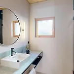 Værelserne har udsigt til bjerget. Et badeværelse består af et badekar og en bruser.
